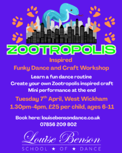 Led by Miss Clara, this energetic afternoon of dance is inspired by the world of Zootropolis. Children will learn a fun routine, create a themed craft and take part in a mini performance at the end of the session.